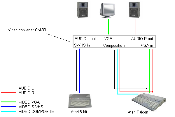 Największym problemem był monitor - Atari 8-bit wymaga monitora w systemie PAL, natomiast Falcon, posiada część oprogramowania wymagającego monitora w systemie PAL jak i część wymagającego monitora VGA.