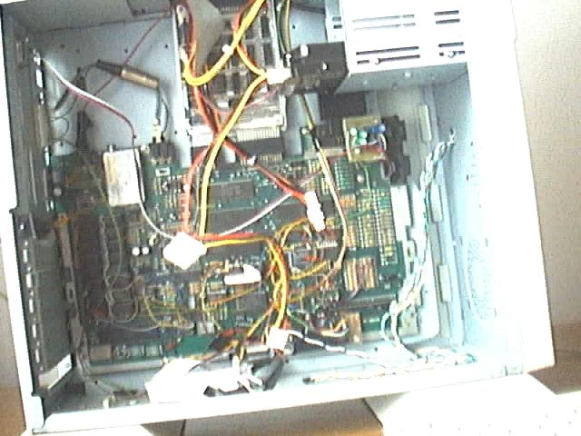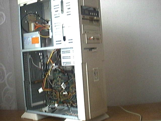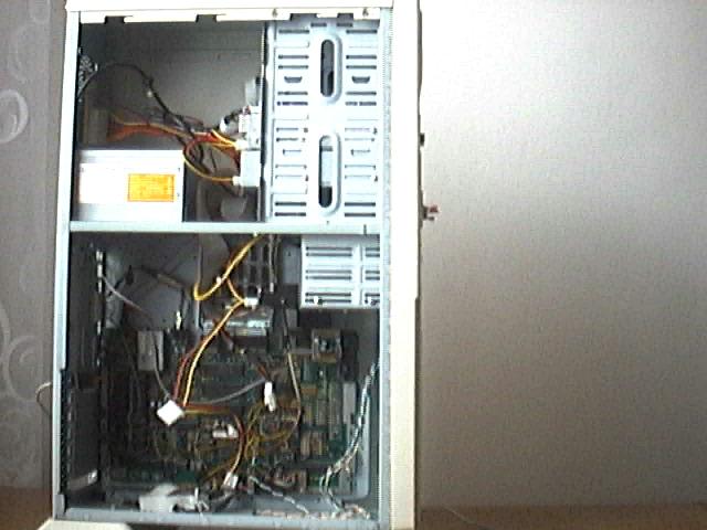 A tutaj widać całe wnętrze obudowy - natywny zasilacz 300W bez problemu zasili płytę atarowską, dysk twardy, cd-rom i stację TOMS 720.