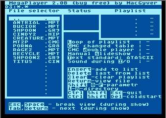 Oprócz odtwarzania wspomnianych już formatów muzycznych: MPT (MD1,MD2), CMC, DMC (odtwarzany "2 razy na ramkę" CMC), FC, TMC umożliwiała ona również przeglądanie plików graficznych, typowych dla Atari 8-bit, takich jak: PIC, MIC, INT, HIP, GED, GR8, GR9, CIN a także plików graficznych: PI1 i PI3 z Atari ST oraz przeglądanie np. plików tekstowych (w wielu standardach kodowania) oraz fontów w popularnym na "maluchu" formacie: FNT.