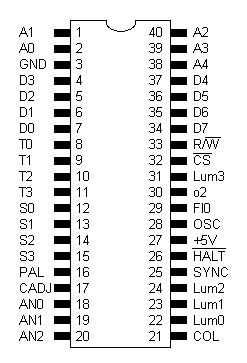 Układ o symbolu: CO 21698. Jest całkowicie niezależnym procesorem graficznym - posiada własne, wewnętrzne MMU, które dekoduje jego własne rejestry sprzętowe pod adresami $d400-$d4ff. Opis sygnałów: